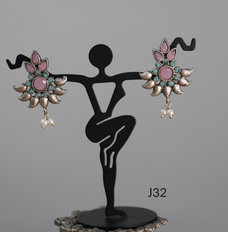 Dual tone earrings with beautiful pink & green stones
